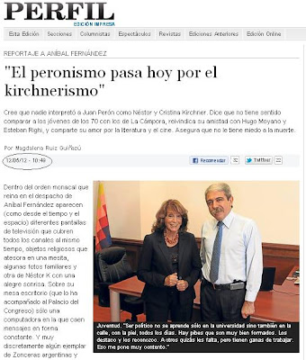 La misma Magdalena Ruíz Guiñazú que anoche apareció pidiendo "derecho a preguntar", ayer mismo salió en una foto que se sacó junto al senador ultraoficialista Aníbal Fernández cuando en la semana le realizó este reportaje que se publicó en el diario opositor Perfil.